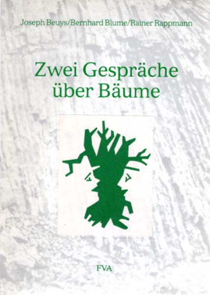 Beuys, Joseph / Bernhard Blume / Rainer Rappmann: Zwei Gespräche über Bäume. Erste Auflage. Wangen. FIU-Versand der Freien Volkshochschule Argental., 1987. 21 x 15 cm. 60 S., 2 Blatt. OKarton mit montierter Illustration von B. J. Blume. Gutes Exemplar. Mit einigen Abbildungen.