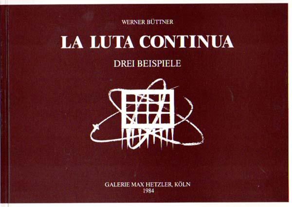 Büttner, Werner: La Luta Continua. Drei Beispiele. Erste Auflage. Köln. Galerie Max Hetzler. 1984. 17 x 23 cm. 71 S. OKarton. Sehr gutes Exemplar. Durchgehend mit Abbildungen versehen, teilweise in Farbe.