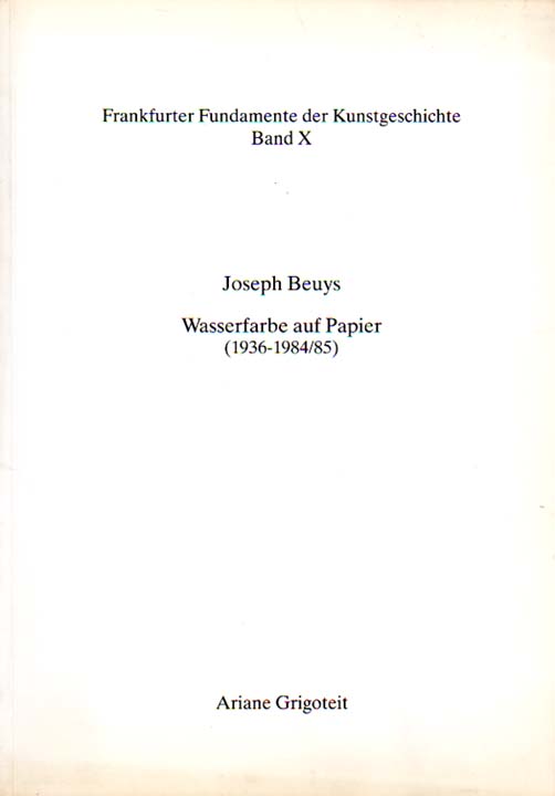 Beuys, Joseph – Ariane Grigoteit: Wasserfarbe auf Papier (1936 – 1984/85). Band 1 [und] Band 2. Erste Auflage. 2 Bände. Frankfurt am Main. J.-W.-Goethe-Universität. 1992. 30 x 21 cm. 142 S., 1 Blatt [und] 359 S., 1 Blatt. OKarton. Einbände an den Kanten minimal gegilbt, Band 1 mit dezenten Bleistiftanstreichungen im Verzeichnis, sonst gutes Exemplar. Frankfurter Fundamente der Kunstgeschichte, Herausgegeben von Gerhard Eimer ; Band X. Durchgehend mit Abbildungen versehen, teilweise in Farbe.