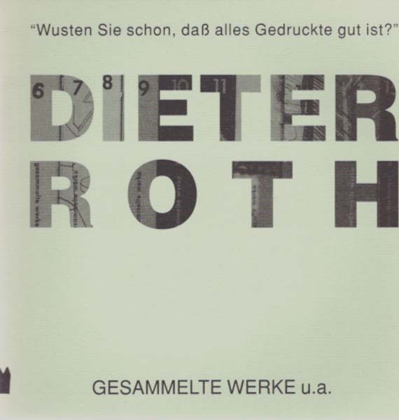 Roth, Dieter: Gesammelte Werke u.a. Wusten Sie schon, das alles gedruckte gut ist? Neues Museum Weserburg. 20. September – 29. November 1992. Auflage: 1000 Exemplare. Bremen. Neues Museum Weserburg. 1992. 21 x 21 cm. 23 S. OKarton. Sehr gutes Exemplar. Band 4 – Sammlung der Künstlerbücher. Enthält einen Textbeitrag von Guy Schraenen – „Man sieht den Baum vor lauter Wald nicht“, sowie s/w Abbildungen. Beiliegend die Einladungskarte sowie ein Katalog der Kunstagentur Wolfgang Wunderlich, München von 1979 zu Dieter Roth, 16 S.