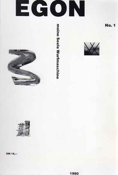 Partenheimer, Jürgen: Egon, meine Seele Wurfmaschine. (Nr. 1). Herausgegeben von Jürgen Partenheimer. Erste Ausgabe. Düsseldorf. Edition Marzona. 1980. 30 x 21 cm. 69 S. OKarton. Tadelloses Exemplar. Künstlerzeitschrift mit Arbeiten u.a. von Pidder Auberger, Bogomir Ecker, Maggie Bauer, Michel Sauer, Mchael Smith etc. Auf der letzten Seite von Jürgen Partenheimer mit kurzer Zueignung versehen, signiert „Jürgen“.