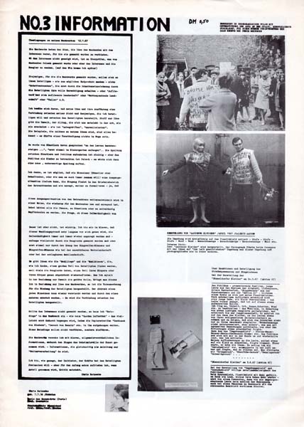 Reinecke, Chris: Information No. 3. Düsseldorf. Asta der Staatlichen Kunstakademie Düsseldorf. 1967. Folio. 4 S. OBroschur / Zeitungsformat. Sehr gutes, frisches und ungefaltetes Exemplar. Informationsblatt zu Arbeiten von Chris Reinecke mit Fotos und Texte von Chris Reinecke. Herausgegeben von den Künstlern mit Unterstützung durch die AstA der Kunstakademie Düsseldorf.