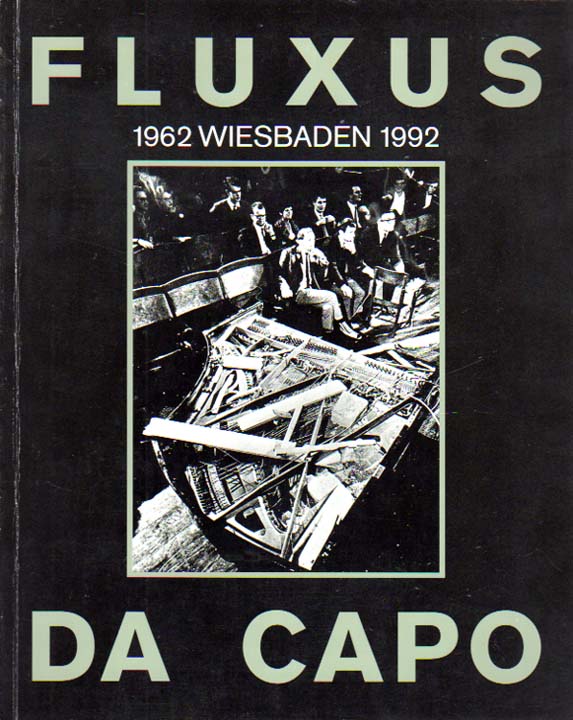 Fluxus Da Capo. Fluxus in Wiesbaden 1992… Henning Christiansen, Geoffrey Hendricks, Dick Higgins, Joe Jones, Milan Knizak, Alison Knowles, Nam June Paik, Benjamin Patterson, Emmett Williams & John Cage, Maria Eichhorn …an neun Orten… Bellevue-Saal, Büchergilde Gutenberg, ESWE-Hochhaus, Fluxeum, Kunsthaus, Nassauischer Kunstverein, Rathaus, Villa Clementine, Wienerwald …im September und Oktober. Erste Auflage. Wiesbaden. Nassauischer Kunstverein / Kulturamt der Landeshauptstadt Wiesbaden / Harlekin Art / Fluxeum. 1992. 26 x 21 cm. 175 S. OKarton mit OKlappenumschlag. Einbandkanten und Rücken etwas berieben, sonst gutes Exemplar. Mit Textbeiträgen von Rene Block, Gabriele Knapstein, Wolfgang Max Faust und Benjamin Patterson / Emmett Williams. Durchgehend mit Abbildungen versehen, teilweise in Farbe. Mit einem beiliegenden Flyer zum Ausstellungsprogramm.