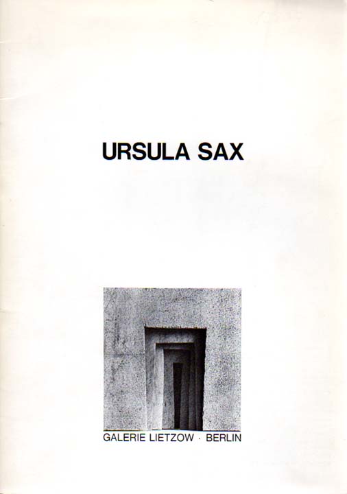 Sax, Ursula: Holzplastiken, Holzreliefs 1976 – 1979. Galerie Lietzow, Berlin, 4. September – 6. Oktober 1979. Erste Auflage. Berlin. Galerie Lietzow. 1979. 30 x 21 cm. 16 unpaginierte S. OKarton. Einband stärker lichtrandig bzw. gedunkelt, vorderer Innendeckel mit kleiner Notiz, hinterer Innendeckel mit 2 aufgeklebten Kopien von Zeitungsberichten bezüglich dieser Ausstellung. Ordentliches Exemplar. Mit einem Textbeitrag von Ursula Sax und 23 s/w Abbildungen.