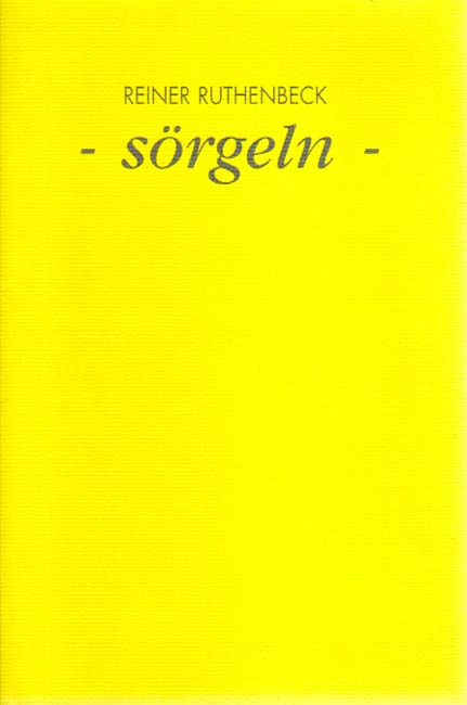 Ruthenbeck, Reiner: – sörgeln – Erste Auflage. Köln. Kunstraum Fuhrwerkswaage. 1999. 24 x 16 cm. [16] unpaginierte S. OKarton mit OKlappenumschlag. Sehr gutes Exemplar. Kunstraum Fuhrwerkswaage Köln ; Nr. 32. Mit einem Textbeitrag von Gerhard Kolberg und 4 Abbildungen, davon eine doppelseitig und in Farbe.