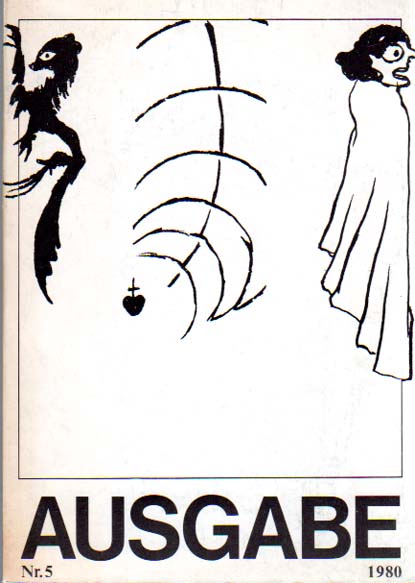 Hundertmark, Armin (Herausgeber): Ausgabe Nr. 5, November 1980. Ein Literatur- und Kunstmagazin. Herausgegeben von Armin Hundertmark unter der Mitarbeit von Brigitte Roberts. 1. Auflage. Berlin. Ausgabe Verlag. 1980. 21 x 15 cm. 119 S. OKarton. Umschlag teils leicht nachgedunkelt. Gutes Exemplar. Enthält Beiträge u.a. von B.J.Blume,. Brus, Gerz, Kirves, Knizak, Rühm, Saito, Tot.