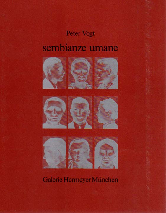 Vogt, Peter: sembianze umane. Formenvielfalt des Jetztmenschen. Galerie Hermeyer, München, 10. März – 25. April 1987. Auflage: 800 Exemplare. München. Galerie Hermeyer. 1987. 27 x 21 cm. 32 unpaginierte S. OKlappenkarton. Einband gering gebrauchsspurig. Gutes Exemplar. Durchgehend mit Abbildungen versehen, teilweise in Farbe.