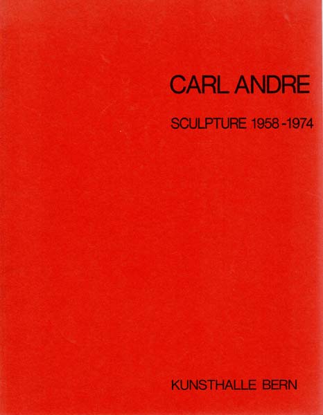 Andre, Carl: Sculpture 1958 – 1974. Kunsthalle Bern, April 24th – June 8th, 1975 / 24. April bis 8. Juni 1975. First printing. Bern. Kunsthalle. 1975. 27 x 21 cm. 99 S. OKarton. Einband am Rücken aufgehellt, sonst sehr gutes Exemplar. Anläßlich der Berner Ausstellung erstellter Refernezkatalog der Skulpturen Carl Andres bis 1974, ohne Anspruch auf Vollständigkeit. Verzeichnet sind 429 Holz- und Metallarbeiten von 1958 bis 1974 mit detaillierten Notationen, viele davon abgebildet. Mit einer Bio- Bibliographie. Grußwort von Johannes Gachnang und Danksagung von Carl Andre in Englisch und Deutsch, das Werkverzeichnis in Englisch.
