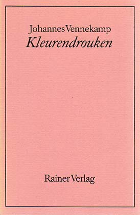 Vennekamp, Johannes: Kleurendrouken. 94 Farbdrucke. 1. Auflage. Berlin. Rainer Verlag. 1991. 15 x 10 cm. 3 Blatt, 94 unpaginierte Tafeln, 1 Blatt. OKarton. Umschlag am Rücken etwas aufgehellt, sonst sehr gutes Exemplar. Eins von 500 im Kolophon signierten und datierten Exemplaren. Durchgehend mit farbigen Abbildungen versehen.