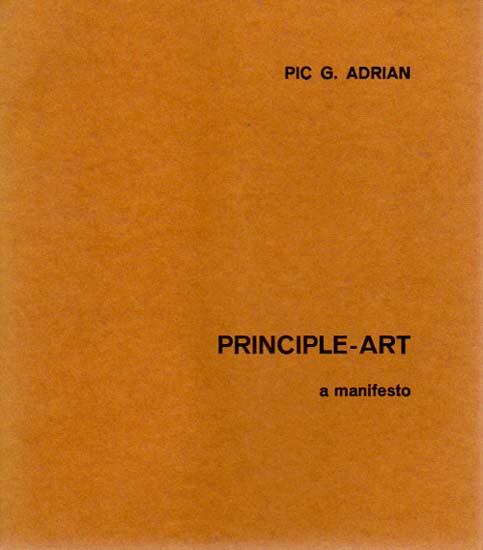 Adrian, Pic G.: Principle-Art. a manifesto. Erste Auflage. Barcelona. Graficas Layetana. 1976. 20 x 18 cm. 8 unpaginierte S. OKarton. Mit durchgehender marginaler Knickspur, letzte Seite mit kleinem Lichtrand an der unteren Kante, sonst gutes Exemplar. Mit einem Text des Künstlers in Englisch sowie mit 2 schematischen Darstellungen. Beiliegend die Visitenkarte des Künstlers.