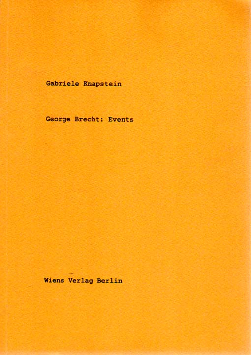 Brecht, George – Gabriele Knapstein: George Brecht: Events. Über die Event-Partituren von George Brecht aus den Jahren 1959 – 1963. Erste Auflage. Berlin. Wiens Verlag. 1999. 30 x 21 cm. 225 S., 28 Abb. OKarton. Sehr gutes Exemplar. Die in dieser Publikation enthaltene Arbeit wurde unter dem Titel „Das Event als ‚Modus von Erfahrung‘. Die Event-Partituren von George Brecht aus den Jahren 1959 – 1963“ von der Universität Gesamthochschule Kassel als Dissertation angenommen. Verzeichnet 28 s/w Abbildungen.