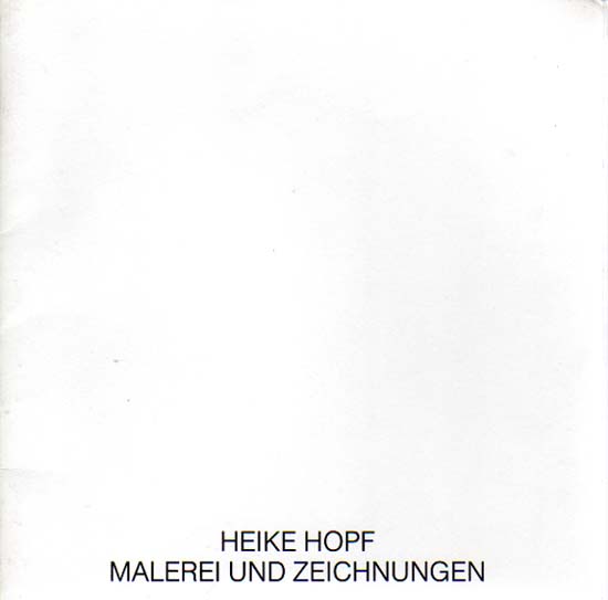 Hopf, Heike: Malerei und Zeichnungen. Städtische Kellergalerie Düsseldorf, Palais Wittgenstein, 12.6. – 13.7.1980. Erste Auflage. Düsseldorf. Kulturamt der Stadt Düsseldorf. 1980. 20 x 20 cm. 24 unpaginierte S. OKarton. Hinterer Einband etwas angestaubt und mit wenigen kleinen Fleckchen, sonst gutes Exemplar. Mit einem Text von Dieter Westecker und 11 Abbildungen, davon 2 in Farbe.