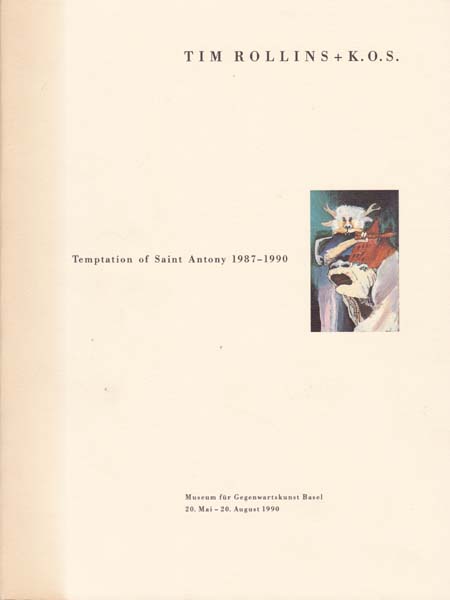 Rollins, Tim: Tim Rollins + K.O.S.. Temptation of Saint Antony 1987 – 1990. Erste Auflage. Basel. Museum für Gegenwartskunst. 1990. 29 x 21,5 cm. 134 S., 1 Blatt. Illustrierter OKarton. Einbandkanten etwas nachgedunkelt und lichtrandig. Sonst gutes bis sehr gutes Exemplar. Katalog zur Ausstellung Basel 20. Mai bis 20. August 1990. Durchgehend mit Abbildungen versehen.Text in englischer Sprache.