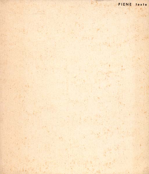 Piene, Otto: 10 Texte. Nota Galerie, März 1961 / Dato Frankfurt, April 1961. 1. Auflage. München. Frankfurt. nota galerie / dato. 1961. 14 x 12 cm. 47 S. OKarton. Umschlag papierbedingt gebräunt, sonst gutes Exemplar. Zusammenfassung von Zeitschriften- und Katalogtexten Pienes, unter anderem auch aus Zero 1 und Zero 2, Azimuth 2, Galerie H, Hessenhuis und weiterem. Korrekturexemplar mit handschriftlichen Nachträgen und Änderungen im Impressum sowie am Titel, wo unter anderem der Titel „10 Texte“ in „12“ geändert ist. Exemplar aus dem Nachlass der Galerie Schmela.