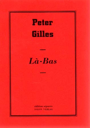 Gilles, Peter: La-Bas. Mit einem Text von Hartmut Kraft. Herausgegeben von Reiner Speck und Gerhard Theewen. Auflage: 1000 nummerierte Exemplare. Köln. Salon Verlag. 1996. 17 x 11,5 cm. 31 S. OKarton. Gutes bis sehr gutes Exemplar. edition separee ; Nr. 4. Künstlerbuch von Peter Gilles. Mit 21 ganz- bzw. doppelseitigen Abbildung, davon 1 montiert und in Farbe. Nummeriertes Exemplar, hier die Nummer 173 von 1000.