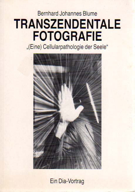 Blume, Bernhard Johannes: Transzendentale Fotografie. „(Eine) Cellularpathologie der Seele“. Ein Dia-Vortrag. Auflage: 750 nummerierte Exemplare. Berlin. Wiens Verlag / Haus am Lützowplatz. 1999. 24 x 17 cm. 37 S. Illustrierter OKarton. Einband gering angestaubt, sonst sehr gutes Exemplar. Nummeriertes Exemplar, hier die Nummer 255 von 750 Exemplaren. Verzeichnet 46 s/w Abbildungen. Erschien anläßlich des Vortrags von Bernh. Joh. Blume im Rahmen der Ausstellung „Transzendentaler Konstruktivismus / Eine ideoplastische Gemeinschaftsausstellung“ von Anna und Johannes Bernhard Blume und Volkmar Haase im Haus am Lützowplatz, Berlin vom 15. November 1998 bis 3. Januar 1999.