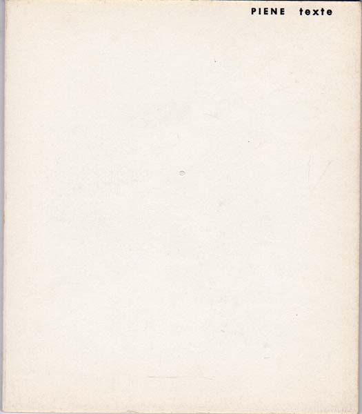 Piene, Otto: 10 Texte. Nota Galerie, März 1961 / Dato Frankfurt, April 1961. 1. Auflage. München. Frankfurt. nota galerie / dato. 1961. 14 x 12 cm. 47 S. OKarton. Sehr gutes frisches Exemplar des empfindlichen Bändchen. Zusammenfassung von Zeitschriften- und Katalogtexten Pienes, unter anderem auch aus Zero 1 und Zero 2, Azimuth 2, Galerie H, Hessenhuis und weiterem. Auf dem Vorsatz handschriftlich großflächig von Otto Piene in der ihm üblichen, eingekreisten Art signiert.