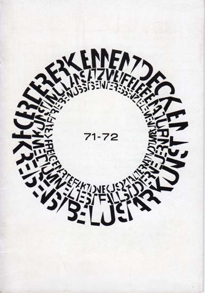 [Kriwet, Ferdinand]: Heft 3 der Schriftenreihe des Förderkreises des Wilhelm-Lehmbruck-Museum e.V., Duisburg. 71 – 72. 1. Auflage. Duisburg. Wilhelm-Lehmbruck-Museum. 1971. 21 x 15 cm. 20 S. OKarton. Sehr gutes Exemplar. Jahresbericht, enthält auf dem Umschlag eine Textscheibe, die auf dem hinteren Innenumschlag mit einer Legende von Ferdinand Kriwet versehen ist. Ferner enthalten sind Beiträge über Hans-Joachim Dietrich, Lothar Fischer, Siegfried Neuenhausen, Uli Pohl, H. G. Prager. Durchgehend mit Abbildungen versehen.[Nicht bei Schuelke / Deutzmann. Kriwet Bibliographie].
