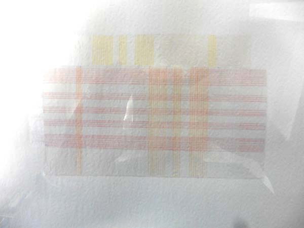 Dakic, Danica: Doppelpack. Aus der Serie 100% Cotton. Sehr gutes Exemplar (der Rahmen befindet sich im bewußt so hergestellten Originalzustand und ist nicht stockfleckig!). Pastell, Buntstift, Acryl auf Karton, gerahmt, verso auf Abdeckung handschriftlich in Bleistift betitelt, zugeordnet und signiert, datiert 1996. Der Holzrahmen von der Künstlerin bearbeitet, gebeizt und patiniert. Frühe Zeichnung der Video- und Installationskünstlerin in Form von zwei kleinen, etwas versetzt übereinander gelegten tapetenähnlichen minimalen Strukturen. [Die Fotoabbildug kann durch Reflexion dem Original nicht gerecht werden].
