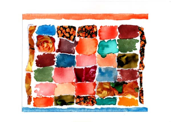 Blecks, Briefkarte mit Zeichnung und Collagen.