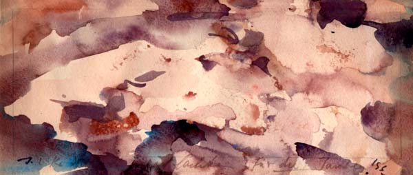 Sackenheim, Rolf: Abstrakte Komposition. 1 Blatt. Untere rechte Kante mit dezenter Knickspur, sonst sehr gutes Exemplar. Mischtechnik auf Karton, 37,2 x 16,3 cm. Aquarell, Gouache, Bleistift. Im unteren Rand signiert und mit kurzer Zueignung versehen. Um 1984/85.