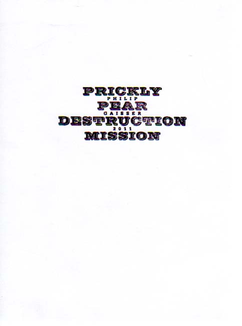 Gaißer, Philip: Prickly Pear Destruction Mission. Auflage: 150 nummerierte Exemplare. [Ohne Ort]. Selbstverlag Philip Gaißer. 2011. 26 x 19 cm. 50 unpaginierte S. (Doppelbögen). OHalbleinen mit OUmschlag. Umschlag marginal angestaubt. Sehr gutes Exemplar. Nummeriertes Exemplar, hier die Nummer 000092/150. Durchgehend mit ganzseitigen Abbildungen in Schwarz-Weiß. Erschien anläßlich des Atelierstipendiums im Künstlerhaus Sootbörn 2009-2010.