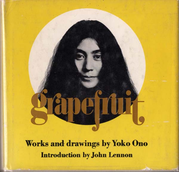 Ono, Yoko: Grapefruit. A book of instructions by Yoko Ono. Introduction by John Lennon. New Edition, first published 1964. New York. Simon and Schuster. 1970. 14,5 x 14,5 cm. Unpaginiert, ca. 286 S. OPappband mit OUmschlag. Der Umschlag mit mimimalen Randläsuren und zwei von alter Hand sauber hinterlegten Einrissen, sonst sehr gutes, innen frisches Exemplar (mit separatem transparentem Folienumleger für den Umschlag). Erste öffentliche Ausgabe. Mit einigen Skizzen im Text. Enthält überwiegend Aufforderungen zu performativen Handlungen: Beat Piece – Listen to a heart beat. In diesem Zustand inzwischen selten.