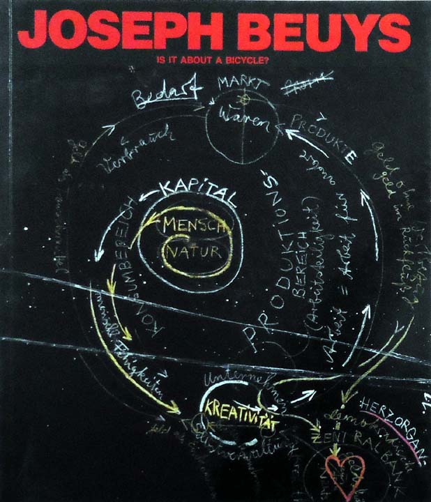 Beuys, Joseph: Is it about a bicycle? Marisia del Re Gallery, New York, January-February 1986. Erste Auflage. New York. Marisia del Re Gallery. 1986. 27 x 24 cm. 16 unpaginierte S. Illustrierter, glanzkaschierter OKarton. Untere Stoßkante minimal gestaucht, sonst gutes Exemplar. Texte in Englisch. Mit einem Vorwort von Marisa del Re, einem Gespräch mit Joseph Beuys von Bernard Lamarche-Vadel sowie einem Textauszug. Durchgehend mit Farbabbildungen versehen.