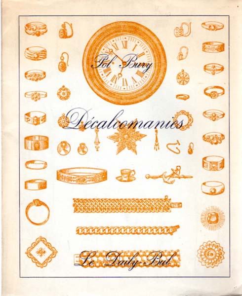 Bury, Pol: Decalcomanies. Le Daily-Bul. La Louviére. Le Daily-Bul. 1970. 27 x 22 cm. 70 unpaginierte Blatt. OKarton mit Klappenumschlag. Umschlag teils etwas gebräunt, sonst gutes Exemplar. Nummer 179 / 500 nummerierten Exemplaren (gesamt 537). Mit 18 ganzseitigen Illustrationsfolgen versehen, der Druck der Illustrationen in Blau, Grün, Gelb, Ocker und Lila.