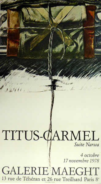 Titus – Carmel, Gerard: Titus – Carmel, Suite Narwa. [Plakat / Poster] GALERIE MAEGHT, Paris, 4 octobre – 17 novembre 1978. Paris. Galerie Maeght. 1978. 82 x 45 cm. Sehr gutes Exemplar. Gérard Titus-Carmel geboren am 10.10.1942 in Paris. Er ist ein französischer Maler, Dichter, Illustrator und Graveur. Gedruckt von Arte.