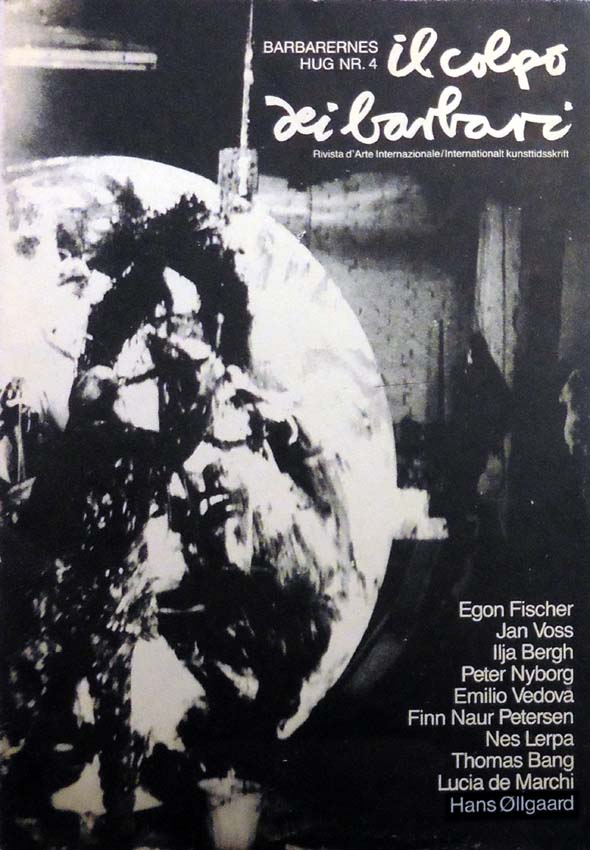 Il Colpo dei Barberi / Barbarernes Hug. Nr. 4. Rivista Internazionale d`Arte / Internationalt kunsttidsskrift. Egon Fischer, Jan Voss, Ilja Bergh, Peter Nyborg, Emilio Vedova, Finn Naur Petersen, Nes Lerpa, Thomas Bang, Lucia de Marchi, Hans Ollgaard. Milano / Hellerup. Barbari I/S, Nes Lerpa & Peter Nyborg. 1988. 35 x 24 cm. 67 S. OKarton. Zeitschrift insgesamt leicht nachgedunkelt, Einband gering berieben, sonst gutes Exemplar. Texte in Italienisch, Dänisch und/oder Englisch. Durchgehend mit schwarz-weiß Abbildungen versehen.