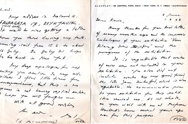 Alcopley – Michel Seuphor: ébauche d´une erreur. A Poem by Michel Deuphor. Translation into Drawings by L. Alcopley. First printing. New York. UNA Editions. 1981. 28 x 22 cm. 55 (9) S. Illustrierter OKarton. Umschlag minimal angestaubt, sonst sehr gutes Exemplar. Mit einer handschriftlichen Widmung von Alcopley auf dem Titelblatt, signiert, datiert 1988. Enthält 45 ganzseitig wiedergegebene Zeichnungen von L. Alcopley. Dabei eine Künstlerpostkarte von 1985 sowie ein vierseitiger handschriftlicher Brief des Künstlers, signiert, datiert New York, 6 June 1988. Inhaltlich bezieht sich der Künstler darin auf eine Zusammenarbeit mit der Empfängerin des Briefes, auf Galerieausstellungen und Empfehlungen. Korrespodierend mit den Illustrationen Alcopleys ist auch der Brief in einer feinen, architektonischen Schrift in schwarzer Tinte verfasst. Ferner dabei: The Open Circle. Epigrams and Letter-Less Writings by L. Alcopley. New York. UNA Editions 1984.96 S., 24 x 16 cm. Mit einer handschriftlichen Widmung des Künstlers an die gleiche Empfängerin, eine deutsche Kunsthistorikerin und Kuratorin, signiert und ebenfalls datiert June 1988.