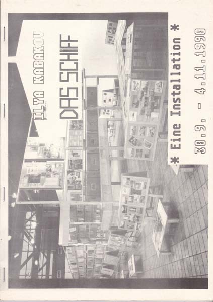 Kabakov, Ilya: Das Schiff. Eine Installation. Erste Auflage. Aachen. Sammlung Ludwig/ Ballsaal der Neuen Galerie. 1990. 29,5 x 21 cm. 127 S. Illustrierter OKarton (Klammerheftung). Einbandkanten etwas lichtrandig und mit kleinen Bereibungen. Sonst gutes bis sehr gutes Exemplar. Erschienen anlässlich der Ausstellung Aachen 19. 9. bis 4. 11. 1990 als reine Text- und Dokumentensammlung übersetzt aus dem Russischen ohne Abbildungen.