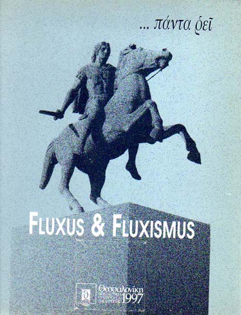 Fluxus & Fluxismus. Thessaloniki [Kulturhauptstadt Europas 1997] vom 8. April bis 11. Mai 1997, Mazedonische Museum für Zeitgenössische Kunst. Erste Auflage. Thessaloniki. Goethe -Institut Thessaloniki / Mazedonische Museum für Zeitgenössische Kunst. 1997. 27 x 23 cm. 131 S. OKlappenkarton mit montiertem Leporello. Untere Einbandkante verso berieben. Gutes Exemplar. Texte in Griechisch. Mit einem Beitrag von Rene Block und mit Biographien der beteiligten Künstler. Durchgehend mit meist farbigen Abbildungen versehen. Die vertretenen Künstler sind: Eric Andersen, Joseph Beuys, George Brecht, John Cage, Giuseppe Chiari, Henning Christiansen, Robert Filliou, Ludwig Gosewitz, Al Hansen, Dick Higgins, Joe Jones, Milan Knizak, Alison Knowles, Arthur Köpcke, George Maciunas, Nam June Paik, Benjamin Patterson, Tomas Schmit, Ben Vautier, Wolf Vostell und Emmett Williams.