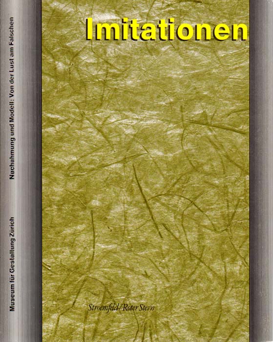 Huber, Jörg [und] Martin Heller, Hans Ulrich Reck [Herausgeber]: Imitationen – Nachahmung und Modell: Von der Lust am Falschen. [Museum für Gestaltung Zürich, 22. November bis 28. Januar 1990]. 1. Auflage. Basel/Frankfurt am Main. Stroemfeld/Roter Stern. 1989. 26 x 21 cm. 303 S. OKarton mit Klappen. Sehr gutes Exemplar. Mit Texten von Jörg Huber, Mark Pieth, Urs Ruckstuhl, Hans G Helms, Lucius Burckhardt, Ursula Gillmann, [und weitere].