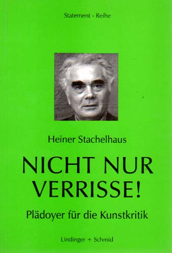 Stachelhaus, Heiner: Nicht nur Verrisse! Plädoyer für die Kunstkritik 1. Auflage. Regensburg. Lindinger + Schmid. 1994. 19 x 13 cm. 206 S., 1 Blatt. OKarton. Mängelstempel am Fußschnitt, sonst gutes Exemplar. Statement – Reihe S 6. Auswahl aus den Kunstkritiken. Mit einigen Textabbildungen.