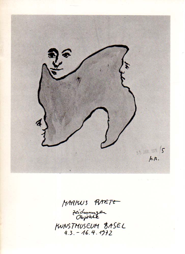 Raetz, Markus: Zeichnungen, Objekte. Kunstmuseum Basel, 4.3.-16.4.1972. 1. Auflage. Basel. Kunstmuseum. 1972. 21 x 15 cm. 24 unpaginierte S. OKarton. Einband leicht angestaubt und am Rücken gering nachgedunkelt, sonst gutes Exemplar. Mit einem Text von Dieter Koepplin und 13 ganzseitigen schwarz-weiß Abbildungen.