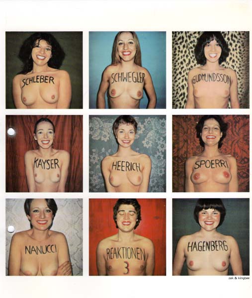 reaktion 3. Schleber – Schwegler – Gudmundsson – Kayser – Heerich – Spoerri – Nanucci – Hagenberg. Auflage 1000 Exemplare. Düsseldorf. Alsbach. Verlaggalerie Leaman. 1977. 32 x 26 cm. 54 unpaginierte Blatt. OPlastik-Ringbuch. Ohne den Verschlußmechanismus, sonst sehr gutes Exemplar. Nummer 3 der bis 1983 in insgesamt 7 Bänden publizierten Künstlerzeitschrift. Hier mit Arbeiten von Alexander Schleber (3 Montagen von Fotografien auf transparenten Folien), Fritz Schwegler, Gudmundsson, Alex Kayser, Erwin Heerich, Daniel Spoerri, Maurizio Nanucci und Helfried Hagenberg. Umschlagentwurf von Milan Mölzer, die Spoerri – Reaktion auf den Beitrag von Erwin Heerich ist von Emmett Williams. [Vgl. H & N.,Aukt. 352, Sammlung Rolf Dittmar, Nr. 1503; Gwen Allen – Artists’ Magazines. An alternative space for art, S. 290].