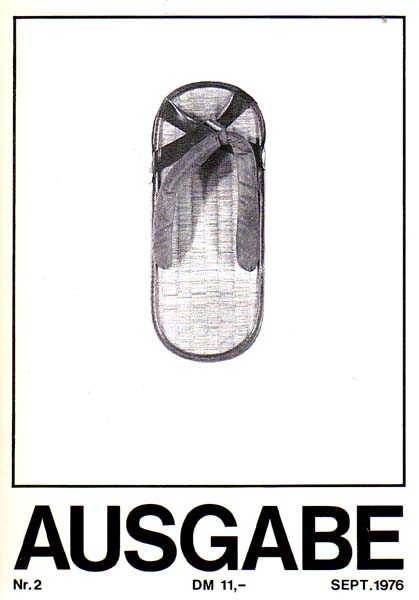 Hundertmark, Armin [Herausgeber]: AUSGABE Nr. 2. September 1976. Erste Auflage. Berlin. AUSGABE-Verlag. 1976. 21 x 15 cm. 144 S. Illustrierter OKarton. Buchbindung etwas labil, Einband minimal berieben. Sonst gutes bis sehr gutes Exemplar. Literatur- und Kunstmagazin, welches drei bis viermal pro Jahr erschien. Ausgabenr. 2 von September 1976, u.a. mit Eric Andersen, George Brecht, Günter Brus, Carlfriedrich Claus, Philip Corner, uvw. Durchgehend mit schwarz-weiß Abbildungen versehen. Texte in Deutsch und Englisch.