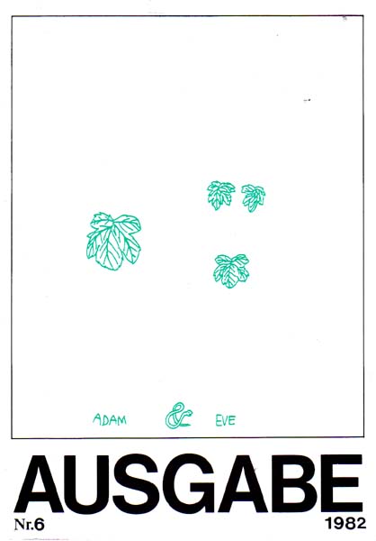 Hundertmark, Armin [Herausgeber]: AUSGABE Nr. 6. September1982. Erste Auflage. Köln. AUSGABE-Verlag. 1982. 21 x 15 cm. 121 S. Illustrierter OKarton. Mit minimalen Bereibungen am Einband, sonst gutes bis sehr gutes Exemplar. Literatur- und Kunstmagazin, welches drei bis viermal pro Jahr erschien. Ausgabenr. 6 von September 1982, u.a. mit Bernhard Johannes Blume, Claus Böhmler, Rudolf Bonvie, George Brecht, Günter Brus, uvw. Durchgehend mit schwarz-weiß Abbildungen versehen. Texte in Deutsch und Englisch.
