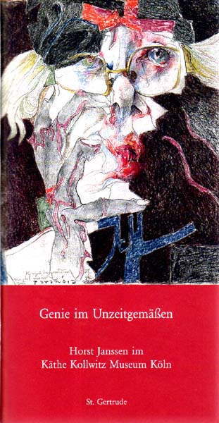 Janssen, Horst: Genie im Unzeitgemäßen. Horst Janssen im Käthe Kollwitz Museum Köln. 11. Mai bis 9. Juli 2006. Frühe Arbeiten, Portraits, Selbstportraits, Eros und Tod, Plakatentwürfe, Nature Morte. Erste Auflage. Hamburg. Verlag St. Gertrude GmbH. 2006. 25 x 13 cm. 47 S. Illustrierte OBroschur. Buchrücken und Stoßkanten minimal berieben und knittrig, sonst sehr gutes Exemplar. Erschienen anlässlich der Ausstellung des Käthe Kollwitz Museum Köln vom 11. Mai – 9. Juli 2006. Mit einem Vorwort von Hannelore Fischer und der Rede zur Ausstellung von Manfred Osten. Durchgehend mit überweigend farbigen Abbildungen versehen.