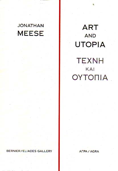 Meese, Jonathan: Art and utopia. Texnh kai oytinia. Erste Auflage. Athen. AGRA Publications. 2012. 24,5 x 17 cm. 47 S. OKarton. Einband an den Stoßkanten minimal berieben, ein paar Seiten innerhalb des Buches fleckig. Sonst gutes Exemplar. Erschienen anlässlich der Ausstellung der Bernier/Eliades Gallery im Januar 2012 in Athen. Durchgehend mit farbigen, ganzseitigen Abbildungen versehen. Texte in Deutsch, Englisch und Griechisch.