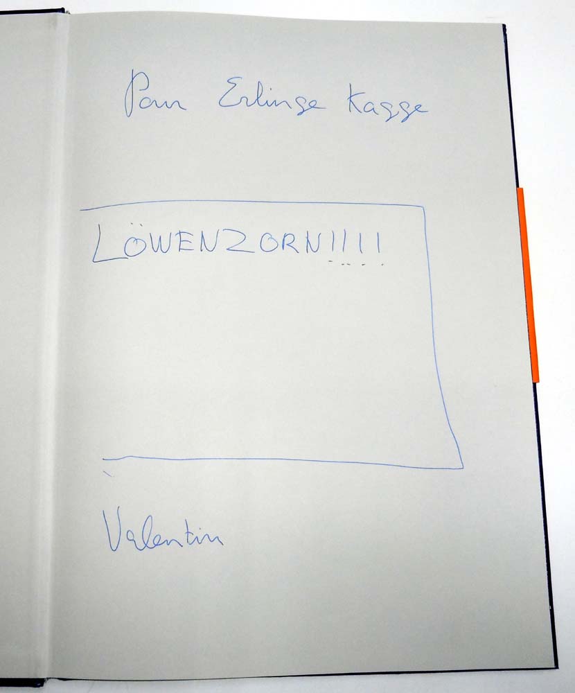 Carron, Valentin: Valentin Carron. [published on the occasion of Valentin Carron’s exhibition at the Swiss Pavilion, 55th International Art Exhibition – La Biennale di Venezia (June 1-November 24, 2013), with the support of the Swiss Arts Council Pro Helvetia]. 1. Auflage. Zurich. JRP Ringier. 2013. 33 x 23 cm. [88] S. OKunstleder mit OBauchbinde. Bauchbinde teilweise mit Randläsuren an der unteren Kante, sonst sehr gutes Exemplar. Künstlerbuch. Mit einem Text von Julien Maret in Französisch und Englisch. Durchgehend mit ganz- bzw. doppelseitigen Farbabbildungen versehen. Handschriftliche Widmung des künstlers auf dem Vorsatz, signiert (″Valentin“).