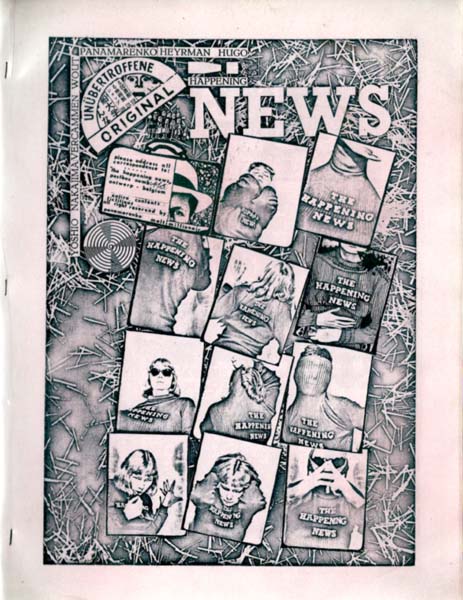 Panamarenko [d. i. Henri Van Herwegen] / Hugo Heyrman / Wout Vercammen / Bernd Lohaus / Yoshio Nakajima et al. (Herausgeber): Happening News [Heft 3 / Oktober 1965] Erste Auflage. Antwerpen. Happening News. 30 x 23 cm. [17] unpaginierte S. Illustrierte OBroschur (Klammerheftung) mit OPlastikumschlag. Broschur etwas angestaubt, Umschlag minimalst nachgedunkelt, sonst noch sehr gutes Exemplar. Durchgehend mit schwarz-weiß Abbildungen versehen. Seltenes belgisches Happening-Magazin aus dem Umfeld der Provo-Szene, hier das dritte Heft vom Oktober 1965. Ab 1965 organisierten Panamarenko, Dr. Hugo Heyrman, Wout Vercammen, Bernd Lohaus, Yoshio Nakajima und andere „Happenings“ in Antwerpen, Brüssel und Ostende. Die „Happenings“ können als freie multidisziplinäre Aktionen verstanden werden, die sich häufig mit gesellschaftlichen Themen auseinandersetzen. Ein gutes Beispiel hierfür ist die »IJsblokkenactie« (Eisblockaktion) vom 6. Juli 1968. Auf dem Conscienceplein in Antwerpen wurden Eisblöcke gestapelt, um „vorübergehende“ Barrikaden zu errichten, eine Aktion, die das Gebiet als verkehrsfreie Zone und als Kinderspielplatz zurückeroberte. Dies war eines der ersten „Happenings“, die das Kollektiv unter dem Namen „VAGA“ (Vrije Aktiegroep Antwerpen – Free Action Group Antwerpen) präsentierte. Die Zeitschrift „Happening News“ erschien erstmals 1965 zeitgleich mit den „Happenings“. Das Magazin bestand hauptsächlich aus Collagen, die mit einem Xerox-Kopierer erstellt wurden. Ähnlich wie die „Happenings“ sind die Collagen surreal und humorvoll und beziehen sich oft auf frühere „Happenings“. Später wurde „Happening News“ in „Milkyways“ umbenannt, weil man den Begriff „Happening“ für veraltet hielt. Sechs Ausgaben erschienen, drei als Happening News und drei als Milky Ways. Das Magazin wurde von September 1965 bis etwa März 1966 in einer kleinen Auflage fotokopiert, wobei die Originalvorlage unter Plastikhüllen eingeheftet war. Erste Seite mit orangener Sprühfarbe bearbeitet.