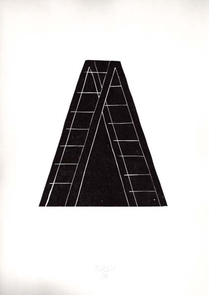 Kiecol, Hubert: [ohne Titel] Treppe – Tor – Leiter – Fenster – Zaun – Busch. Hamburg-Langenhorn. Griffelkunst e. V. 1984. 50 x 35 cm. 6 Blätter. Sehr gute Exemplare. Vollständige Serie von sechs Original-Holzschnitten auf leichtem Vellum des deutschen Künstlers Hubert Kiecol (*1950), herausgegeben 1984 von der Hamburger Griffelkunst-Vereinigung [A-Reihe 234. Wahl. II. Quartal 1984]. Jeweils mittig unterhalb des Bildmotives vom Künstler in Bleistift handsigniert. Griffelkunst, WVZ.-Nr. 234 A1 – 6.
