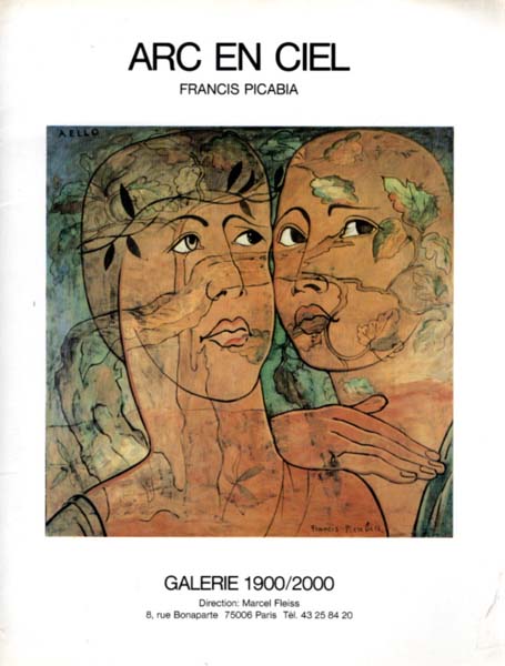 Picabia, Francis: Arc en ciel. Francis Picabia. Textes de André Breton, Camille Bryen, Marcel Duchamp, Edouard Jaguer, Jean-Jacques Lebel, Pierre de Masot. Erste Auflage. 2 Bände. Paris. Galerie 1900/2000. 1987. 29,9 x 23 cm. 47 S.; 16 S. Illustrierter, glanzkaschierter OKarton; OKarton mit Klammerheftung. Einband leicht angestaubt und etwas lichtrandig. Sonst noch gutes Exemplar. Durchgehend mit meist farbigen Abbildungen versehen. Katalog zur gleichnamigen Ausstellung in der Galerie 1900/2000 in Paris, vom 6. April bis zum 16. Mai 1987. Texte in französischer Sprache. Beiliegend der Text „Picabia, moteur a toutes tendances“ von Jean-Jacques Lebel (16 S.) sowie eine Einladungskarte zur Vernissage der Ausstellung am 6. April 1987. Recto eine Farbabildung nach der Arbeit „Le couple“ von Francis Picabia aus dem Jahre 1927.