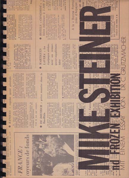Steiner, Mike: Mike Steiner, nd Frozen Exhibition. Auflage 300 Exemplare. Berlin. Selbstverlag. 1974. 30 x 22 cm. 60 unpaginierte S. Spiralbindung mit Plastikdeckeln. Erste Seite etwas gebräunt. Sonst gutes Exemplar. Durchgehend mit Abbildungen versehen. Nr. 41 von 250 nummerierten Exemplaren mit eigenhändiger Signatur des Künstlers (Gesamtauflage 300 Exemplare).