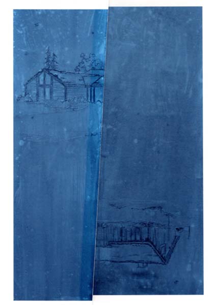 Raedecker, Michael: Ohne Titel. 2013. 37,9 x 26,9 cm. 1 Blatt. Sehr gutes Exemplar. Collagierte, zweigeteilte Farboffsetlithographie des niederländischen Künstlers Michael Raedecker (*1963) auf Grundlage einer Fotografie seines 2013 entstandenen, monochromen Gemäldes „Place“ (Öl und Fäden auf Leinwand, 175,3 x 260 cm, Andrea Rosen Gallery New York). Ein Bildausschnitt mit weißem Blattrand zur Linken kontrastiert mit einem enstprechenden, auf dem Kopf stehenden Ausschnitt zur Rechten. Verso in Bleistift vom Künstler signiert, datiert und nummeriert. Aus einer limitierten Edition von 100 Exemplaren, hier Exemplar Nr. 46/100.