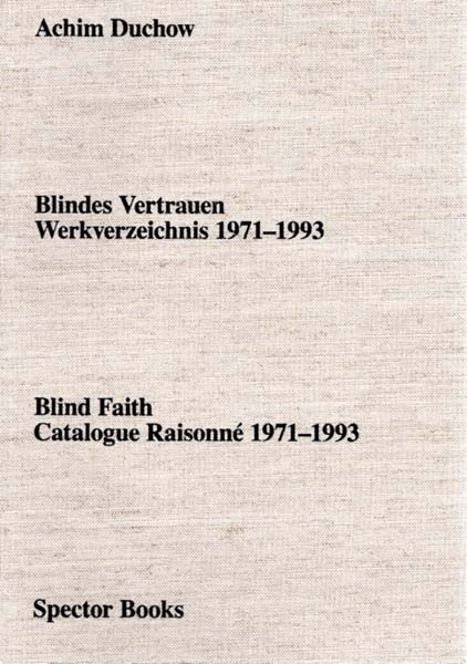 Duchow, Achim – Max Schulze (Herausgeber): Blindes Vertrauen. Werkverzeichnis 1971–1993. Blind Faith. Catalogue Raisonné 1971-1993. Erste Auflage. Leipzig. Spector Books. 2023. 34 x 24 cm. 461 S. Leinenkaschierter OKarton. Sehr gutes Exemplar. Durchgehend mit meist farbigen Abbildungen versehen. Das Werkverzeichnis des Düsseldorfer Malers, Fotografen und Objektkünstlers Achim Duchow (1948 – 1993) lädt ein zur Wiederentdeckung eines komplexen OEuvres. Im spielerischen Umgang mit Autorschaft, Subjektivität und Medien, dem unmittelbaren Zugriff auf alle ihn bewegenden Themen ist ein Werk entstanden, das auch heute noch seine Wirkung entfaltet. In chronologischer Folge, unterbrochen von einzelnen Essays verzeichnet die Publikation als eine über 400-seitige
