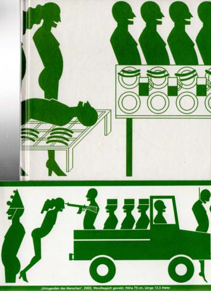Ettl, Georg: Städtische Galerie im Park Viersen, 4. Mai bis 22. Juni 2003. Erste Auflage. Viersen. Städtische Galerie im Park. 2003. 16,5 x 17,4 cm. 63 S. Illustrierter OPappband. Innen papierbedingt minimalst lichtrandig, sonst sehr gutes Exemplar. Durchgehend mit meist farbigen Abbildungen versehen. Katalog zur gleichnamigen Ausstellung des deutschen Künstlers in der Städtischen Galerie in Viersen, vom 4. Mai bis 22. Juni 2003. Beiliegend der 13-teilige Leporello (10 x 19,5 cm bzw. 10 x 240 cm) zur Ausstellung, der den 75 x 15,5 Meter großen, gewebten Wandteppich des Künstlers, betitelt „Untugenden des Menschen“, wiedergibt.